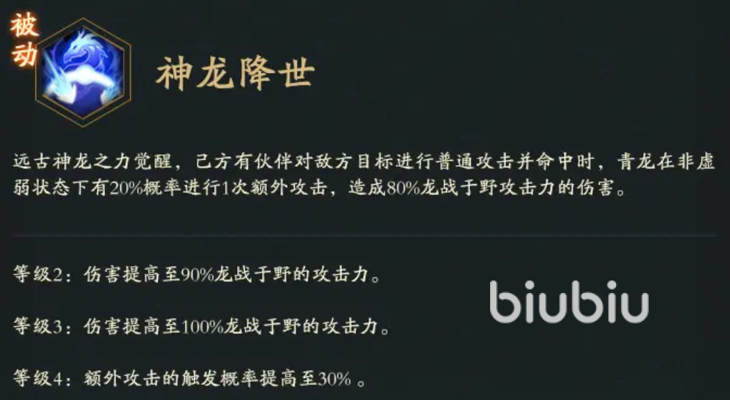 神仙道3青龙技能属性详解 青龙技能效果分享