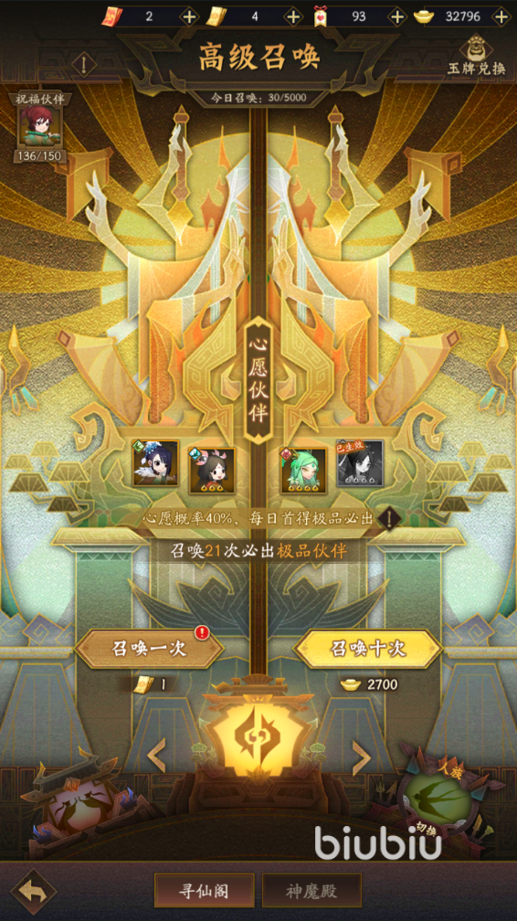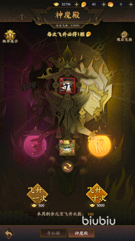 同时游戏中会有一处神魔殿,那里也能获取到一些角色,只不过此处是专门获取稀有的神魔系角色,其他的只能通过召唤获取。而且这里进行获取所需要的道具是元宝,同时从中获取的道具可以到飞升商店里进行兑换。