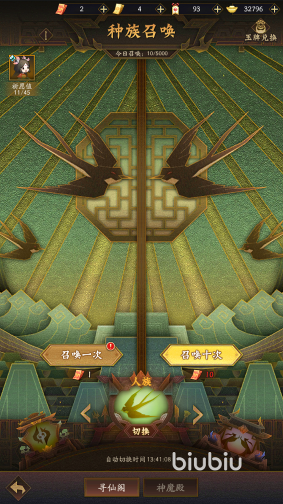 就比如此处会有高级召唤区域,那里你们能先设定好自己想要几个角色,也就是心愿伙伴了,之后再进行召唤就会有更高的概率获取到他们。而在召唤界面中,还会分为不同的种族召唤,在这个页面的下方就会有切换选项。