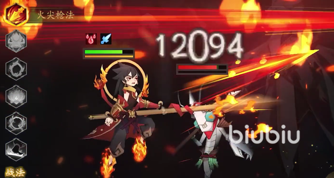 火尖枪,对敌方造成灼烧状态一回合,该灼伤状态是可以叠加的,每回合造成哪吒攻击力一半的伤害。虽然持续时间不长,但伤害足够。基本上触发了这个技能,效果就相当于额外获得了50%的攻击提升。