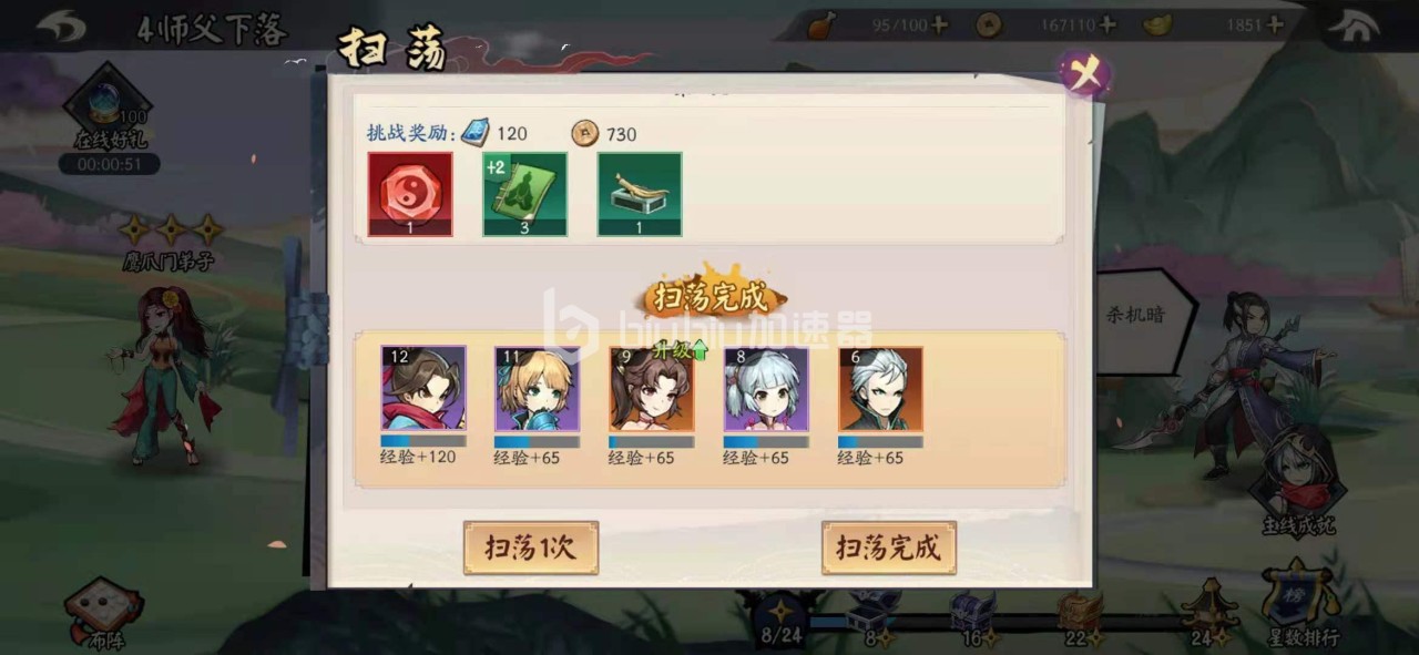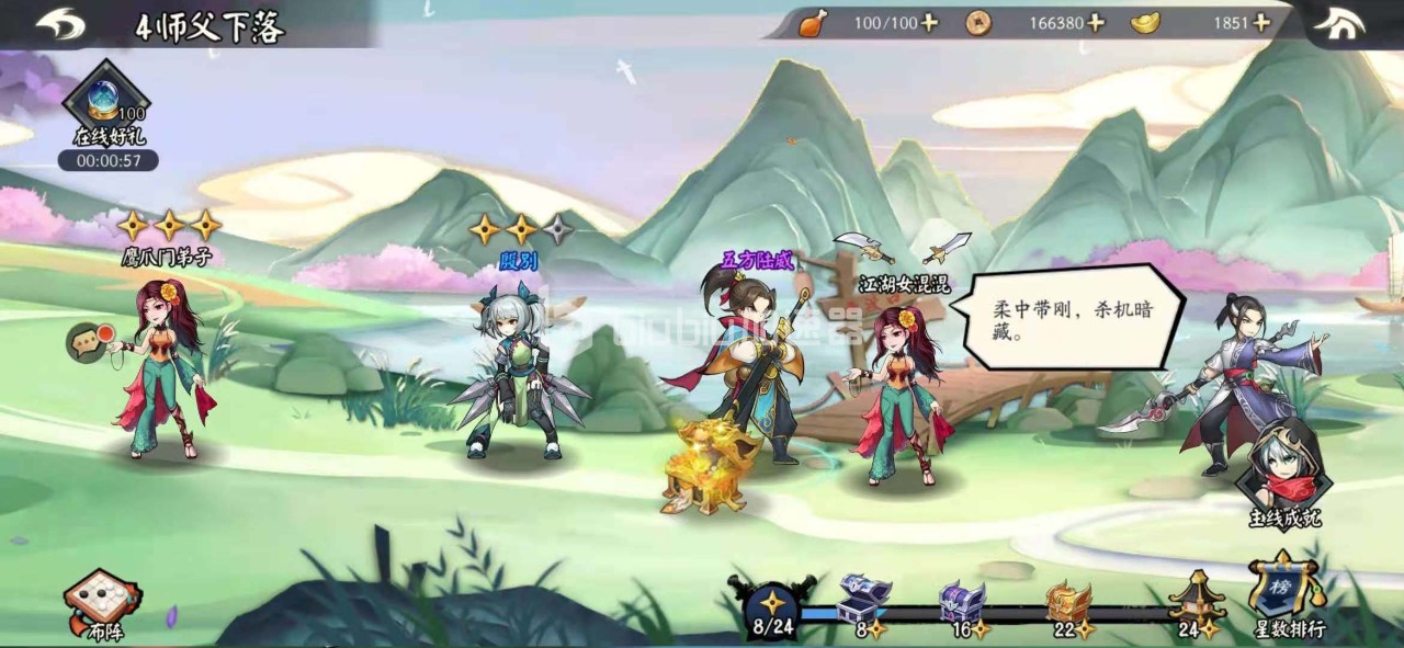 我们想要快速通关每个关卡的话,是需要有强大的属性基础作为支撑。这样我们才可以迅速升级。想要提升自身属性的话,我们可以升级不同侠客。也可以进行突破修炼,还可以升星。也可以通过组建自己强力的阵容,事半功倍的攻打怪物。