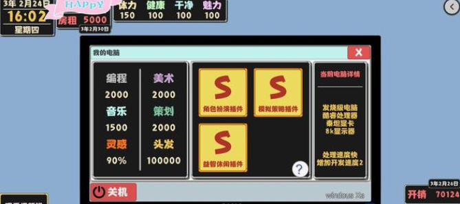 6等到钱有2500多的时候,就能家里一直的画画册,看编程书,建造歌曲,把编程歌曲美术刷出150以上以后,购买一两个游戏策划书(确保能剩2000多的钱就好)。