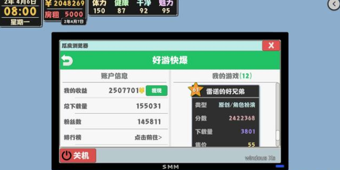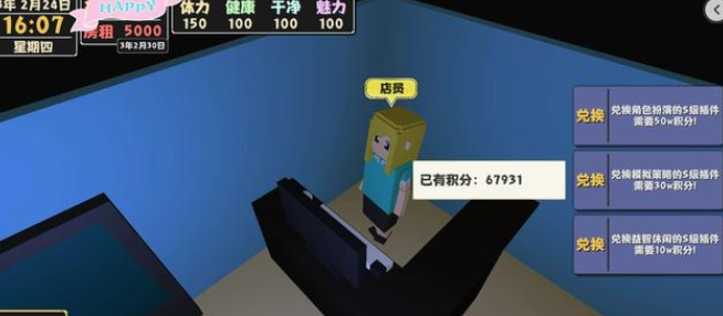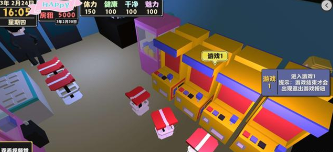 2起床去商城打工,购买1个小零食(确保给你体力沐浴)回家了沐浴,入睡,随后重复(假如健康值快少于75就用维生素)等来有3000多了就再购买600块的维生素备用。