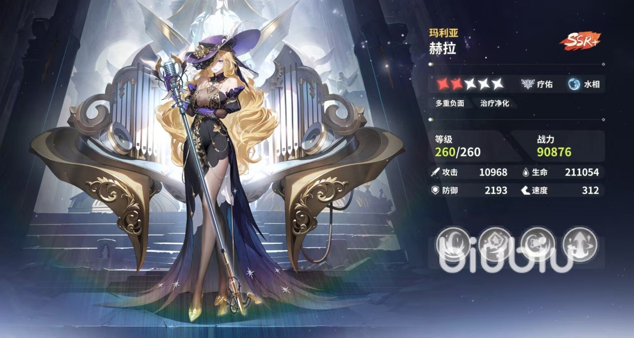 结合这些技能特点,在阵容搭配的时候就有了比较清楚的指向,那就是配合其他能够触发异常状态的目标,所以小编组成的阵容是水相进阶队。具体的搭配选择是狄俄涅、赫拉、青龙、米迦勒和葱聋。这套阵容的优势在于凭借赫拉为敌方附加的多个负面状态,青龙和米迦勒都可以依靠附加的这些状态打出高额输出。狄俄涅作为阵容中的防御型角色,附带的群体中毒和负面减益,也可以很好的和狄俄涅的技能配合起来,并且提供防御。青龙的负面联动和协同追击,与米迦勒一起形成了阵容里的输出核心。