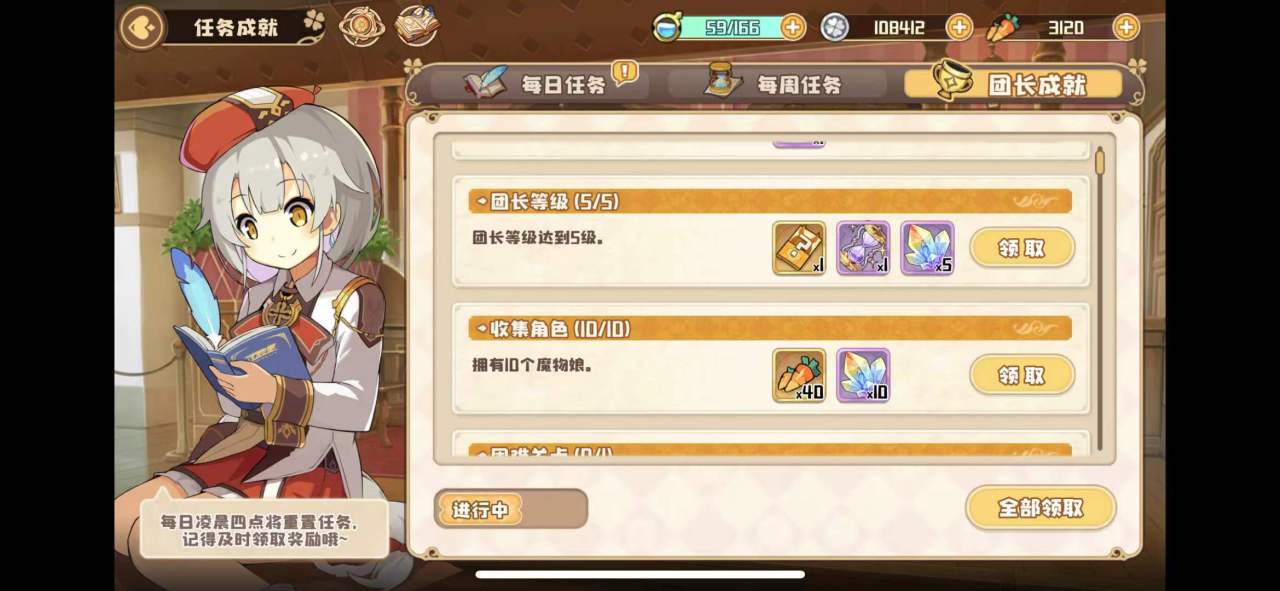 1每日任务,每周任务,团长奖励