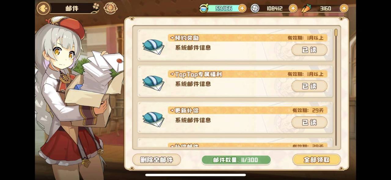 活动会不定时赠送胡萝卜,每天都要检查一下自己的邮箱内有没有有附赠的右键,点击一键收取附件来获得奖励。
