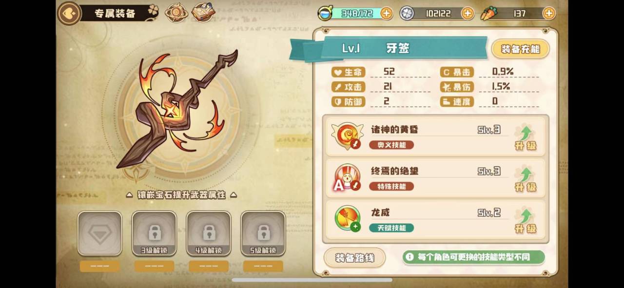 培养方面需要的资源也比较多,技能主点1技能,有资源就升级大招,装备以幸运套为主,既可以撑血也可以进行输出。