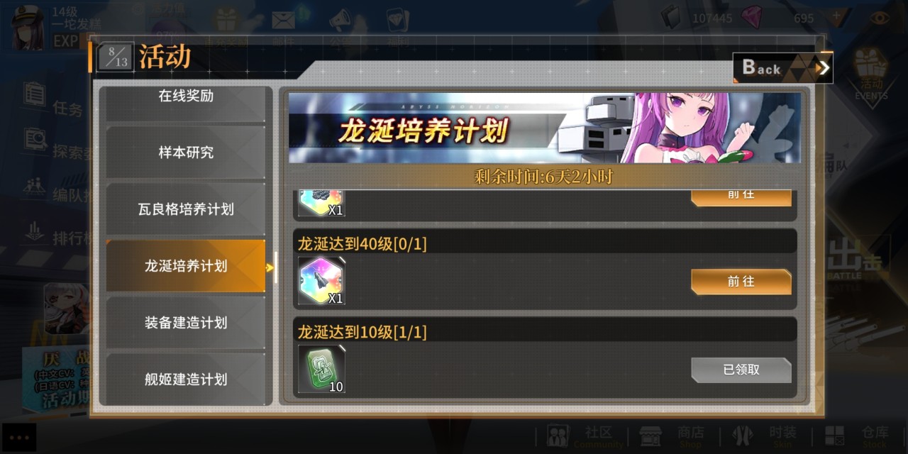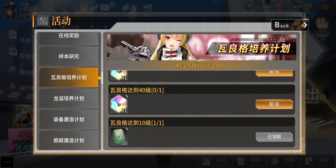 在根据系统发出的活动,比如在瓦良格培养计划中,当瓦良格达到十级以后就可以获得10张加速卡,同样龙涎培养计划也是一样的。