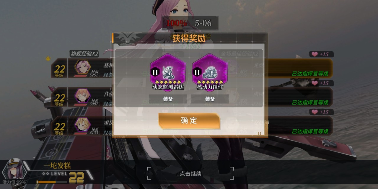 当本关获得胜利并且达到S级别,就有可能会掉落一个装备改造满星的二级雷达和一个二级核动力组件,这也是小编为什么在上一段说玩家的战斗力尽量提高,否则勉强获得胜利掉落装备的可能性就越小。