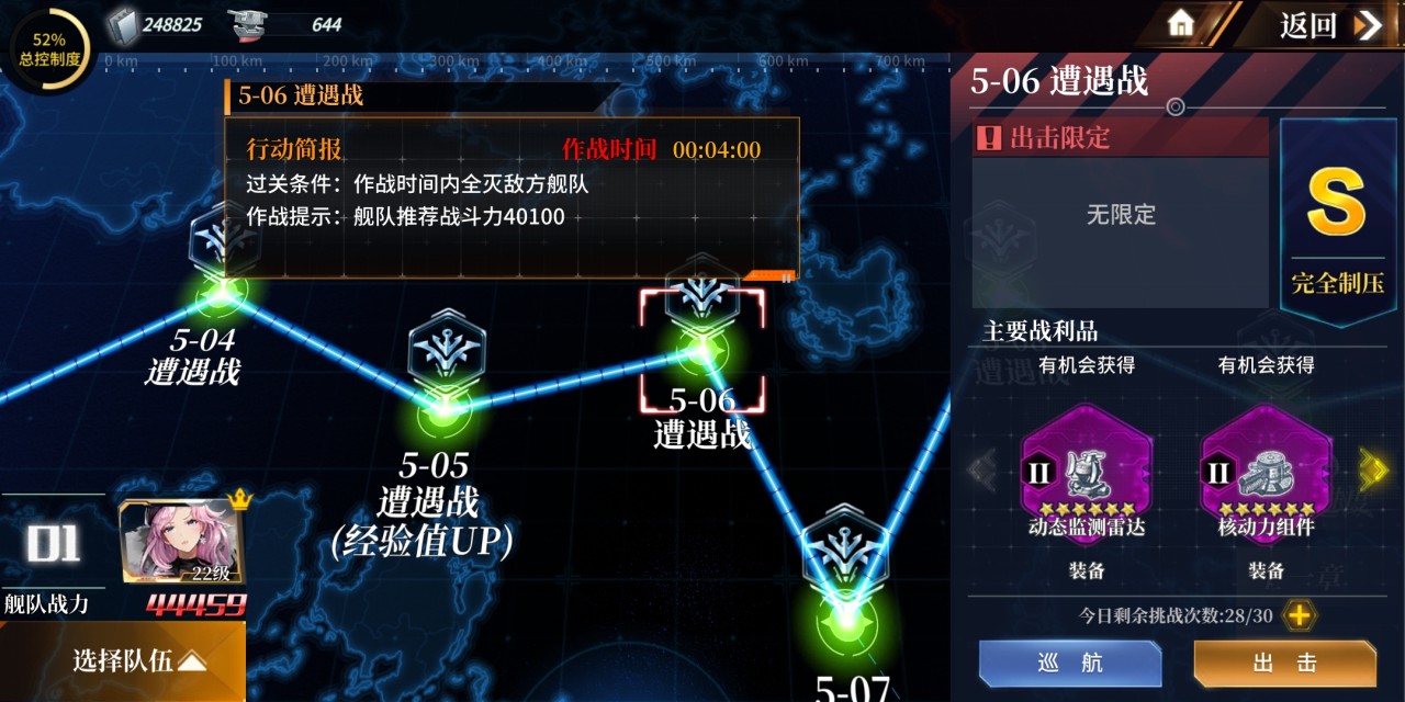 在四分钟之内全灭敌方舰队,在5-6关之前的关卡只需要三万多的战斗力就可以消灭敌方舰队,但是从这一关开始战斗力的梯度会提升的越来越高,要完成本关的战斗力最好超过它所需要的战斗力,这样会增加胜利的几率。