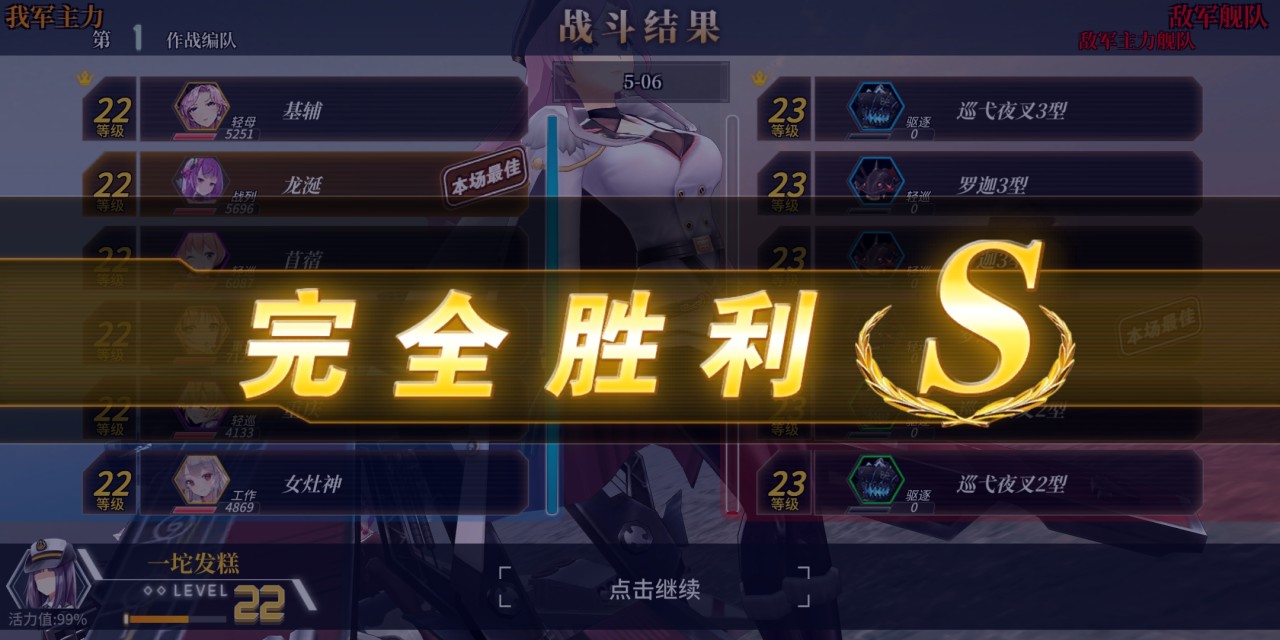第一,想要过这一关并不难,只要玩家的舰队达到四万以上,就可以获得胜利,并且5-6的敌方舰队只有一支队伍,在进行战斗的时候,玩家需要多注意右上角的小提示,一定要将队伍调整为T字队形,这样不仅可以提升战斗力,还可以有利地躲避敌方舰队攻击。