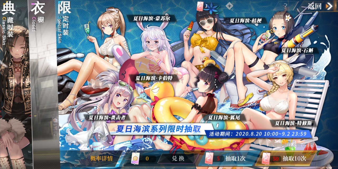 其次,时装券还分为梦幻时装券,当玩家进入时装页面后,可以看到典藏时装和限定时装,这些用时装券是无法兑换的,只能用梦幻时装券进行抽奖,才有可能会掉落其中的时装,每次抽奖需要使用5个梦幻时装券。