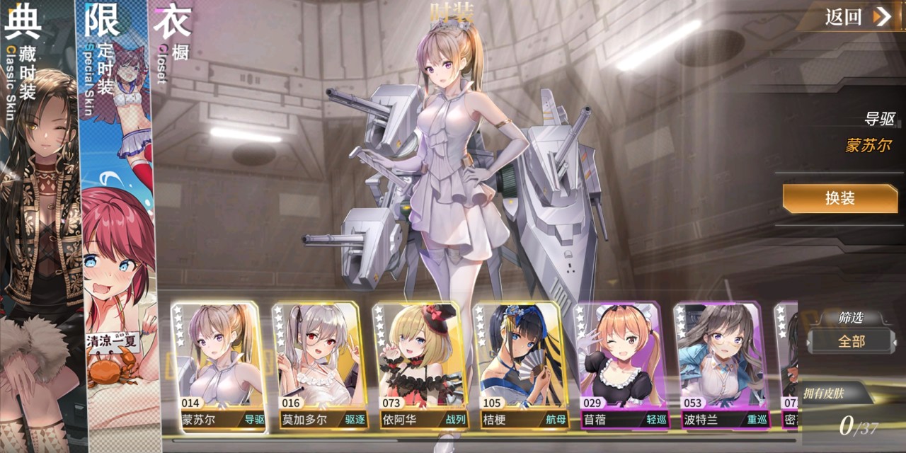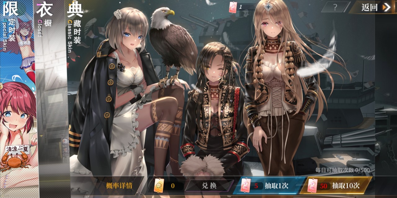 可以点击舰姬右边的换装,采取兑换,这时就需要用到时装券了,在衣橱里的时装可以用时装券去兑换,而时装券可以去商店购买。