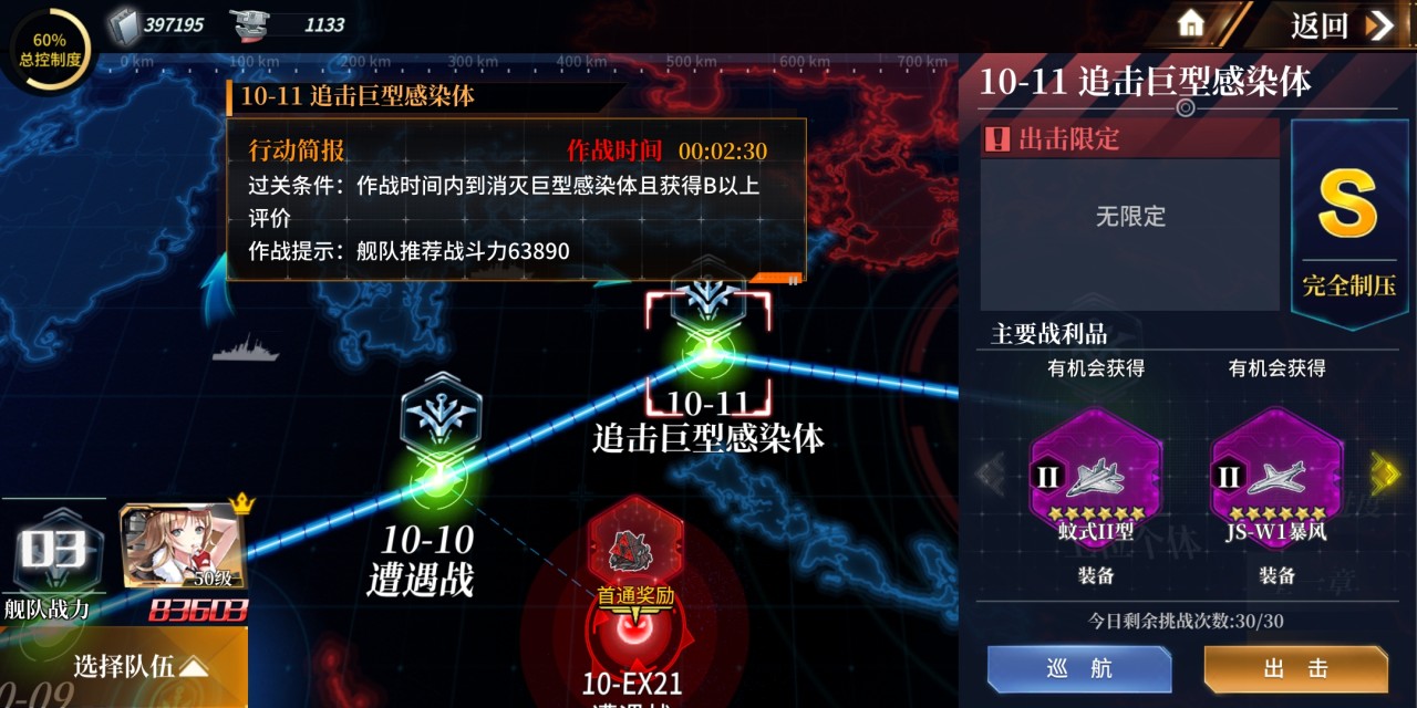 队形的变化曾经作为新手教程在前几章的ex关卡中出现过,如果忘记了的小伙伴可以再去复习一遍哦!在跑图中最重要的就是拿到分数,后面的BOSS其实是很好打的,就是分数不好拿。