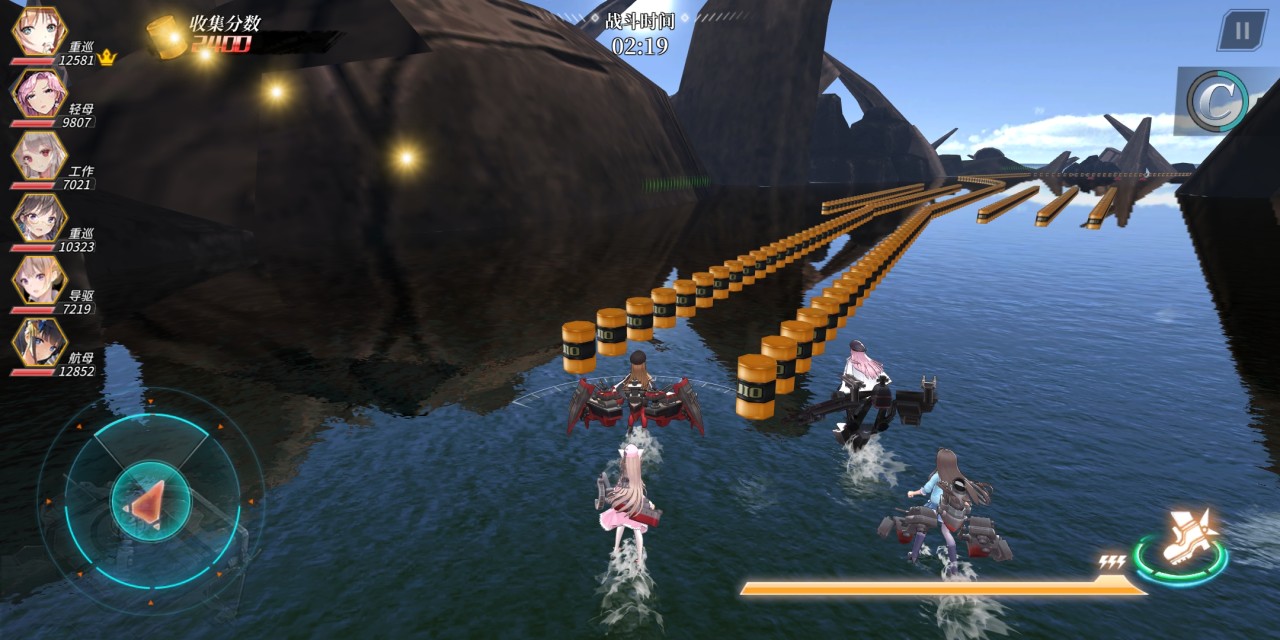 随着舰姬的等级不断升高,跑图的难度也在不断提升,在队伍前进的途中,跑动的鱼雷和静置的火炮都会来阻挡舰姬的速度,从而拖延赚分的时间。当玩家遇见鱼雷这类跑动的攻击时,立马调回T形队伍,可以有效的躲避攻击。