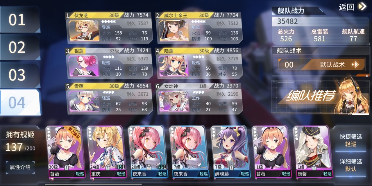 那么编队的时候需要导入几个轻巡呢?小编建议一个就可以了,多了会拖队伍的战力,并且放入的这个轻巡最好是生存比较强的,因为在战斗结算的时候,舰姬的生命值会直接影响最后的游戏评分,所以在建议玩家打轻巡的时候尽量合理安排。