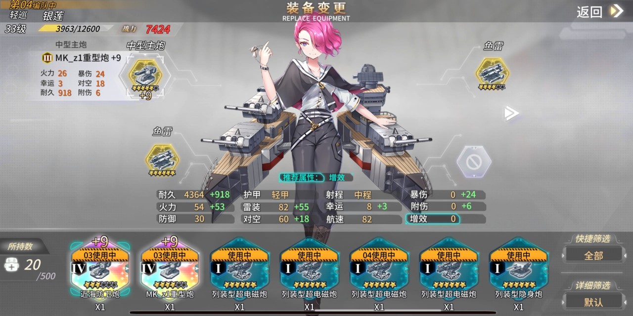 上一段小编提到轻巡是活到最后几率最大的舰姬,这也就意味着需要对轻巡的装备重视起来,这样才会提高胜利的概率。在主战队中,轻巡的装备栏有三个,两个装鱼雷,一个装中型主炮,都不是攻击力强的武器,所以玩家需要对装备的武器进行深渊化和强化来不断武器的火力。