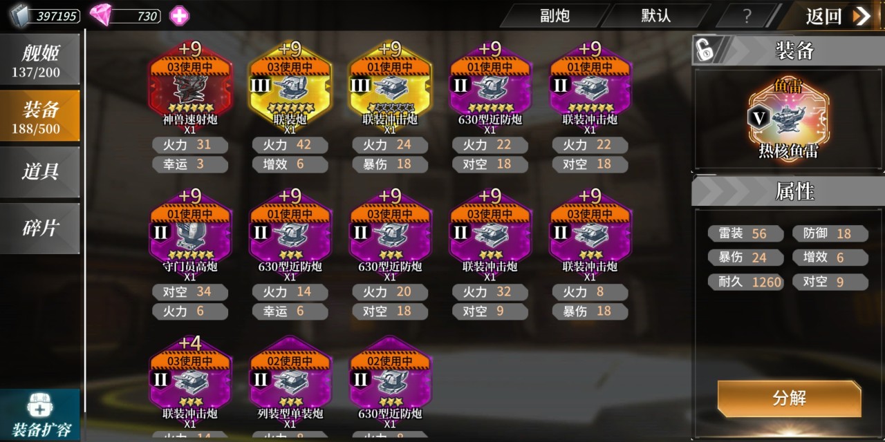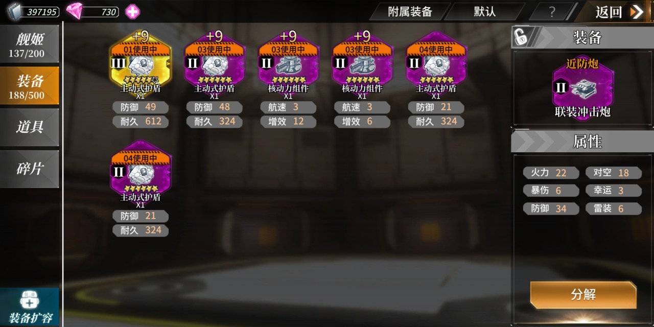 等级越高拥有的装载栏越多,可以增加额外的战力,所以玩家可以好好利用这一点,为空袭队的战力更上一层楼。全部副炮和全部附属装备这两栏,副炮的装载方法可以根据上一段的方法进行安装。
