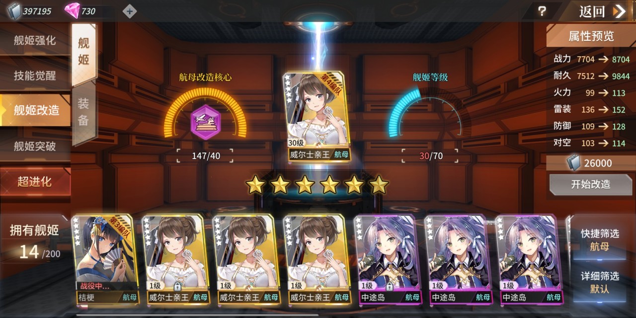在装载战机上,小编的推荐是在改造一栏里,将可利用度最大的轰炸机进行强化和改造升级,这样在为航母进行装备变更的时候可以优先选择。以上两点是对于操作等级较低的航母玩家的建议,对于等级高的四星到六星的航母应该怎么玩呢?