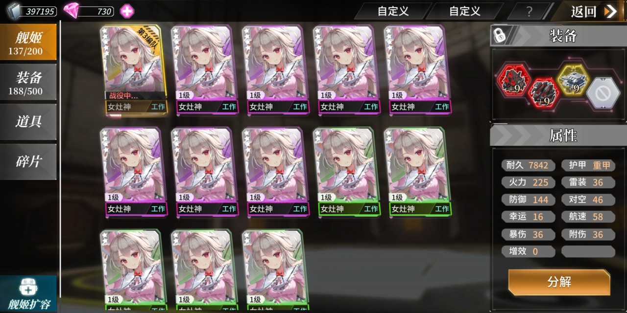 小编小提示:总结以上几点,玩家需要对获得的工作舰姬提起重视哦,因为她们是解锁舰姬技能的关键哦,并且获得的几率较小,还需要准备足够的巡航机器人,以及在分解舰姬的页面,千万不要将工作舰姬给分解了!