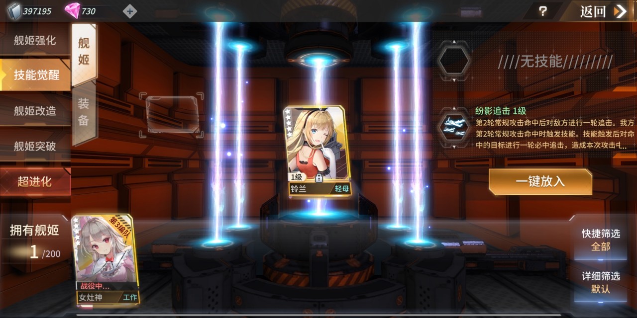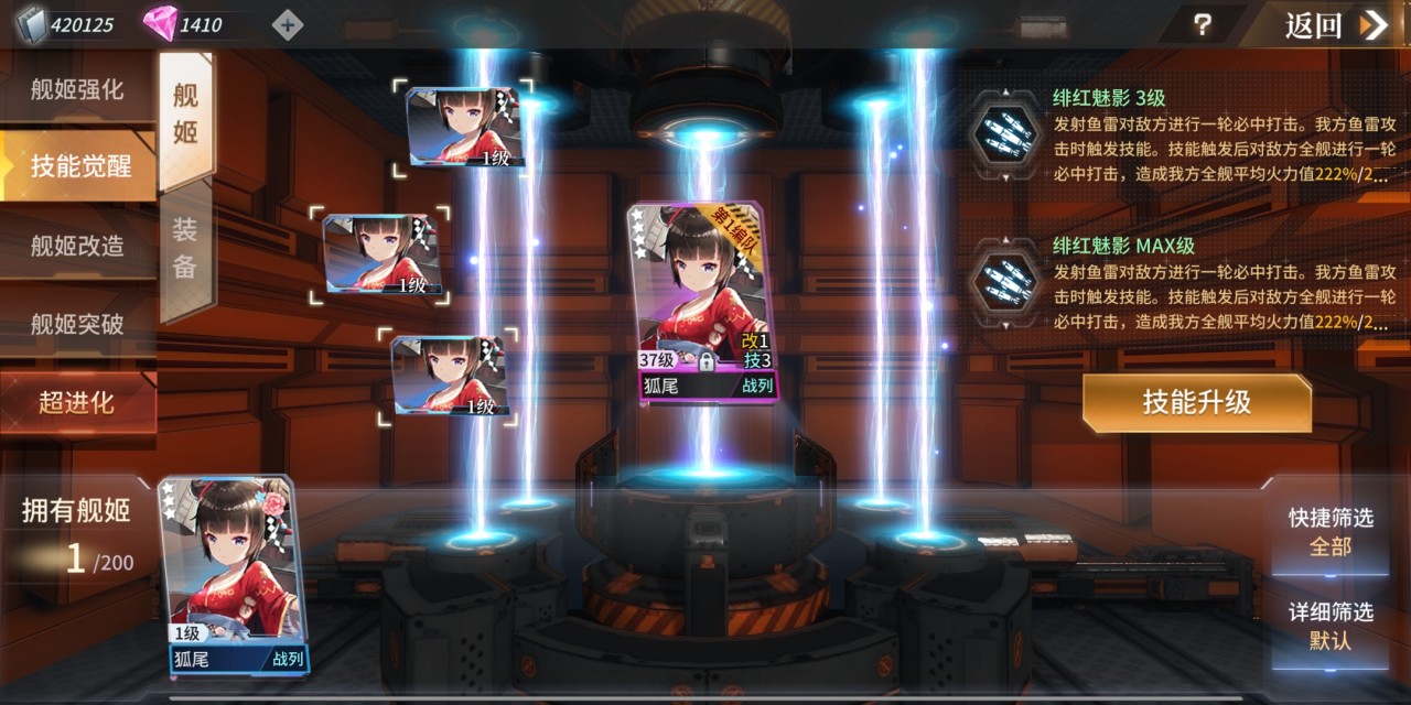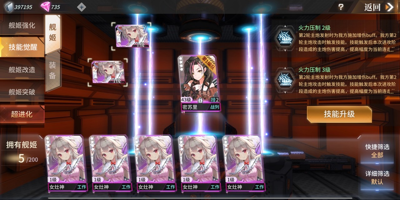 首先,自带技能的舰姬只需要玩家进行技能升级就可以了,但是自带技能的舰姬并不多,甚至有一些舰姬是不存在技能的。对于新玩家来说,解锁技能切勿操之过急,因为技能需要达到一定的等级才能解锁,前期的玩家可以安心刷级。
