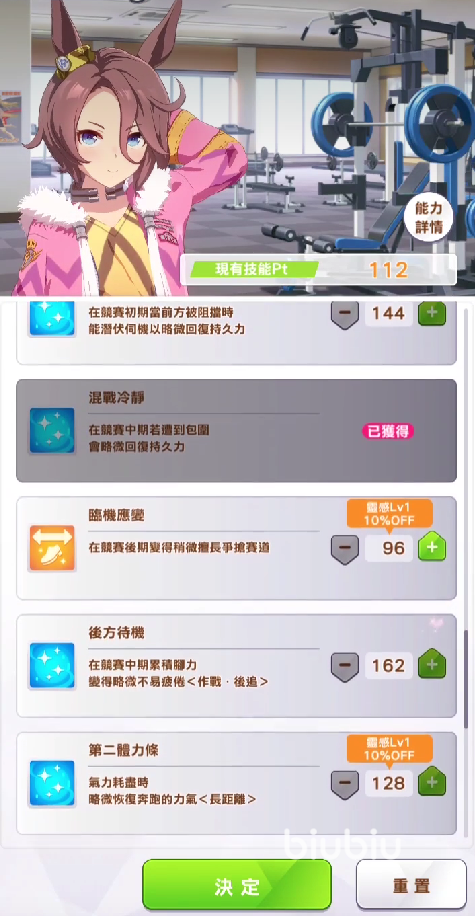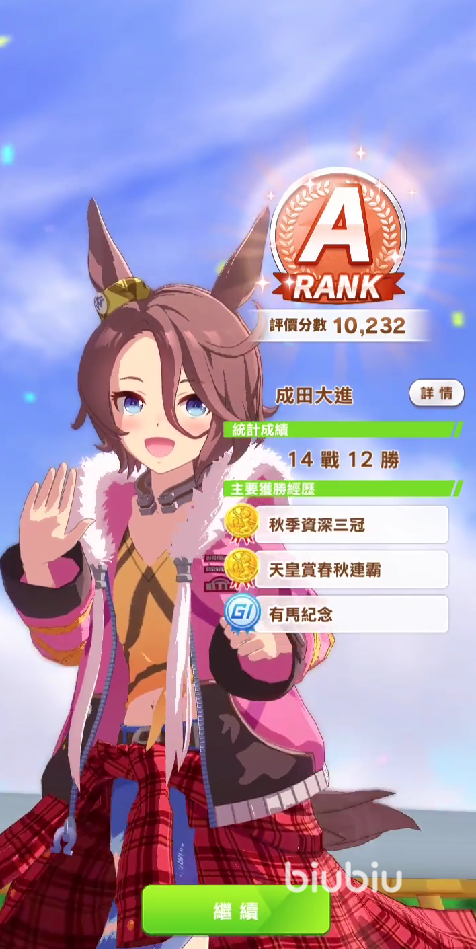 总的来说,这个角色的强度方面还是很不错的,作为一个追马来说,该有的技能都有了,唯一的缺点可能就是属性以及成长率加成方面的困难。但这一点可以靠支援卡以及继承因子解决,因此,如果各位玩家们缺少中长距离的选手的话,那么可以试着用这位作为今后的主力进行培养。