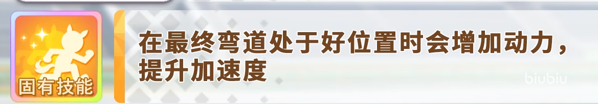 最后一个技能则是如果大树快车在比赛序盘的时候位于前列的话,那么她会更加容易扩大差距,这个技能也是只有在英里赛才能触发。这是大树快车的基础技能,在看过之后,得出的结论是,虽然这些技能发动率很高,而且技能效果都非常不错,但是技能只能在英里赛触发,其他赛事这些技能是没有任何作用的。所以玩家们尽量让大树快车参加英里赛。