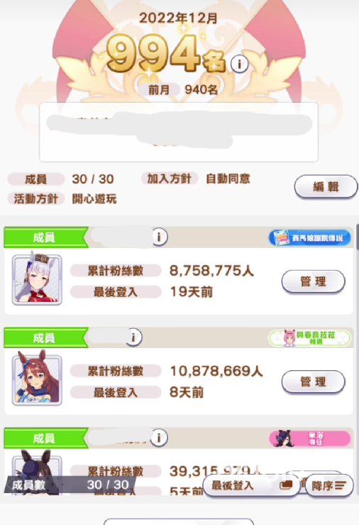 此外,就是我们的公会排名所获取的相关宝石奖励。这个排名不是根据玩家们的强度来算,而是根据玩家们的养成粉丝数量来确定的。该排名一周会统计一次,在这周内所有公会玩家们所培养的角色总粉丝数量会进行一个总计算,当达到一定的要求或档次的时候,就可以根据相应的粉丝数量来获取到相应的宝石奖励了。