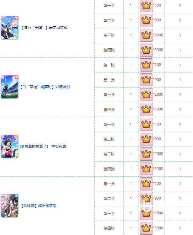 友情点和皇冠则是我们和其他玩家交流所获得的额外产出资源,前者可以通过借其他玩家支援卡获得友情点,可以在商店兑换抽卡券等资源。而后者则是作为公会的贡献,能在公会商店里当中购买了大量的养成材料。