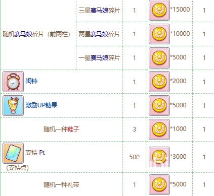 常规的资源方面是SP点数以及金币,其中,金币主要用于角色觉醒以及支援卡升级,加上我们可以租借好友马娘作为种马获取因子以及每天三次育成之后的神秘商店购买资源。这个在游戏初期是一个相当稀缺的资源,虽然可以靠着我们育成角色以及刷相应资源付款获得,但往往仍不够用,因此建议多囤积一些比较好。