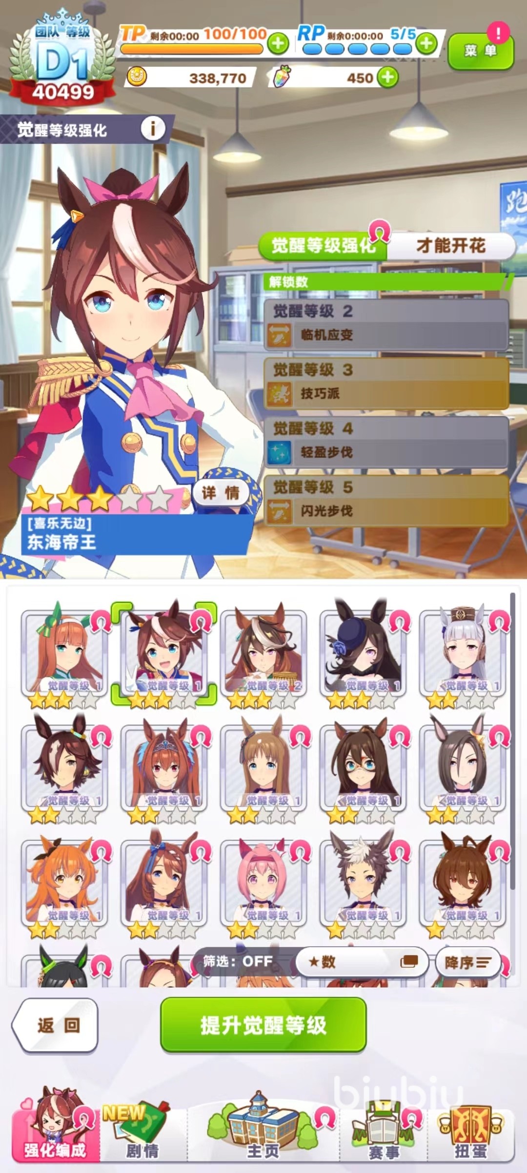作为一个养成游戏,游戏当中最关键的养成因素也就是角色们在游戏当中是非常重要的一环。玩家们可以通过抽取或者活动等内容获取到这些角色们,并对其进行养成。与以往常规对特定角色升级等等所不同的是,游戏当中,我们的角色并没有等级之分,只有觉醒等级和星级之分。这两者所开启的也只是角色的基础属性和特定的技能解锁,并不能对角色产生根本性的影响。而真正的角色育成,则是要通过我们的育成剧本来进行。
