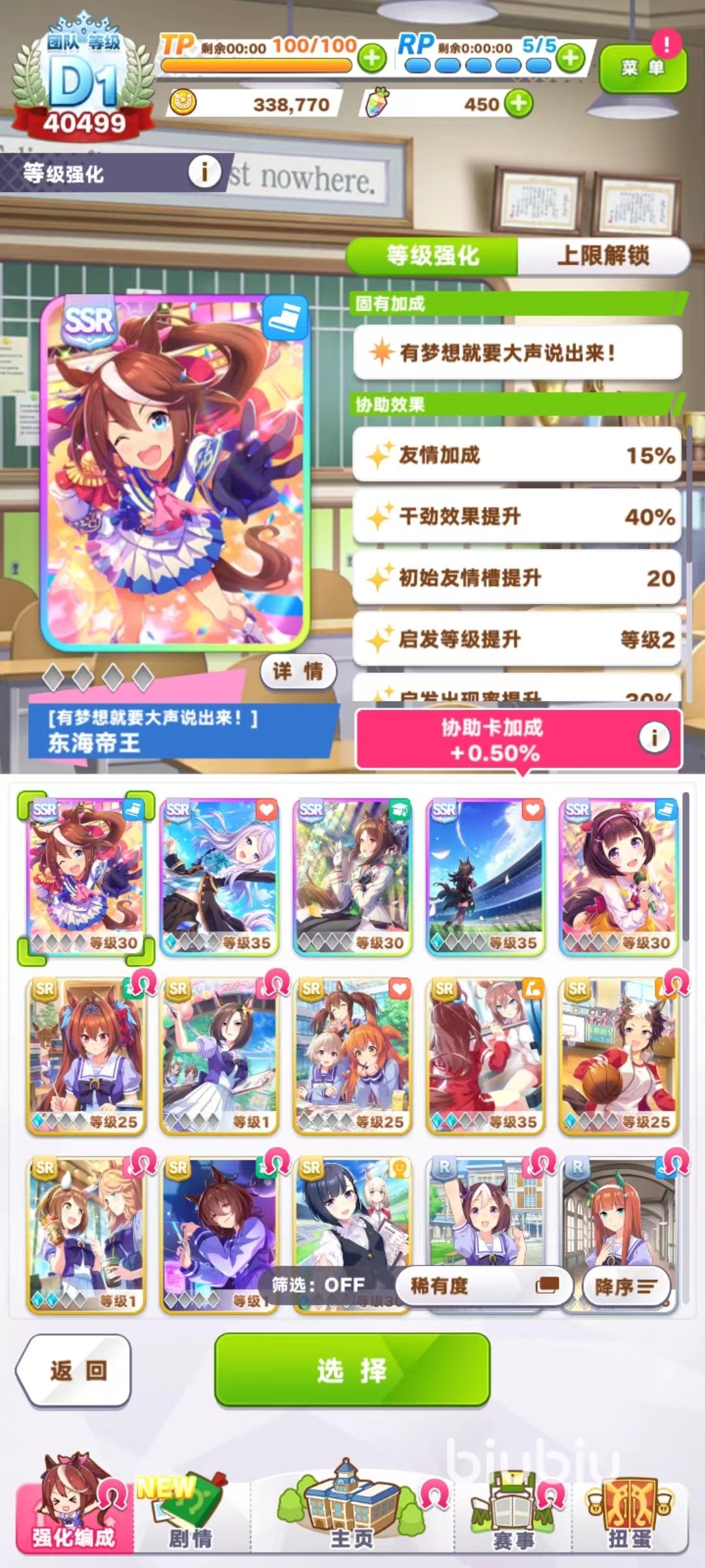 另外的大头就是技能的获取,高稀有度的支援卡能给玩家们获取到更高级别的技能。甚至于一些金色传说级技能和一些额外所需要的技能,都可以通过支援卡来获得。不过,这些技能还同样需要通过事件触发,如果选择不对的话,还是不会获得那些技能的。