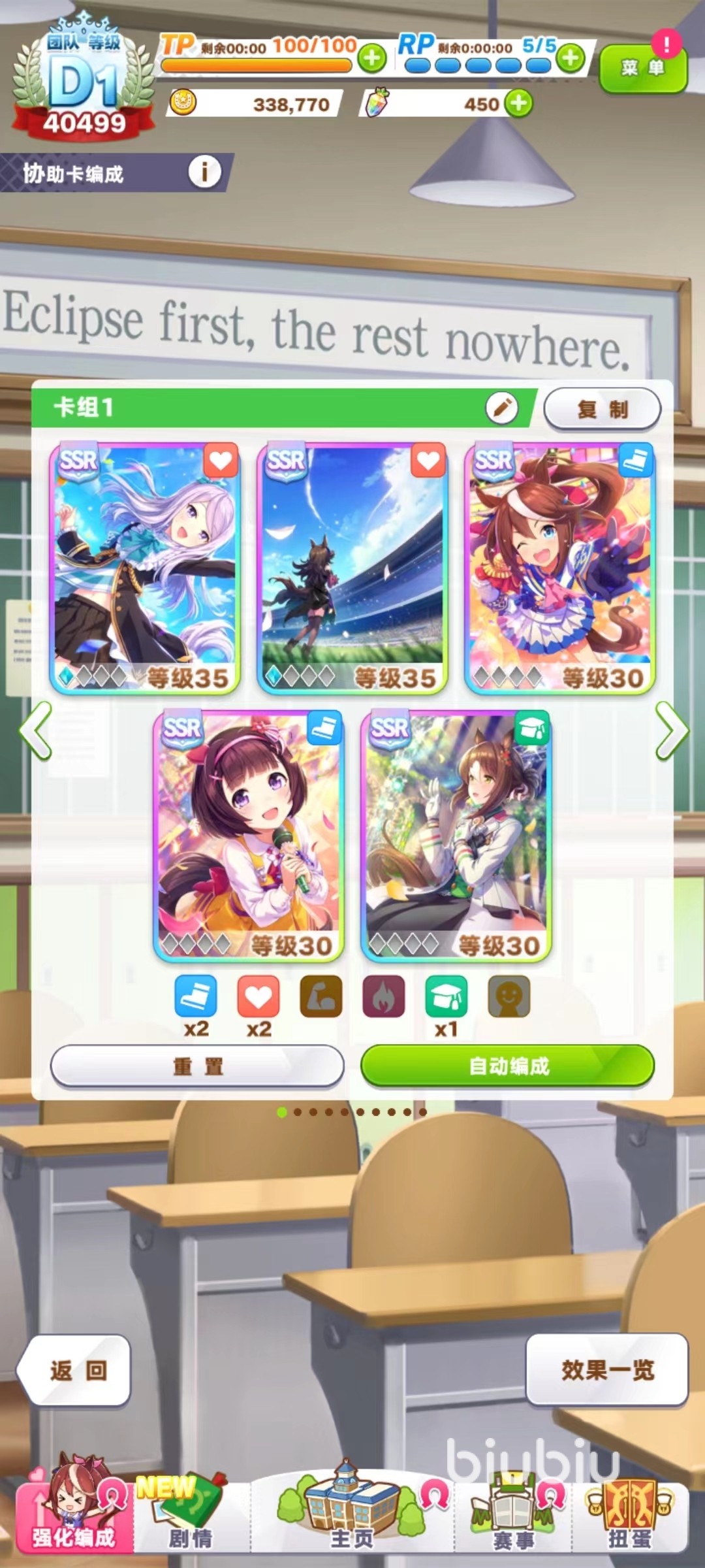 最后我们来谈谈支援卡方面的问题,甚至于有些时候游戏当中,在抽卡方面支援卡的好坏,实际程度上比角色的好坏要地位高的多。在本作当中,支援卡可以直接决定的一个角色的上限。毕竟一个低星角色可以靠高级支援卡,养出很不错的角色。但高星角色却无法通过低级支援卡得到进一步成长,因此,除了在游戏的前期阶段,绝大多数情况下,支援卡的优先级都比角色本身要高。