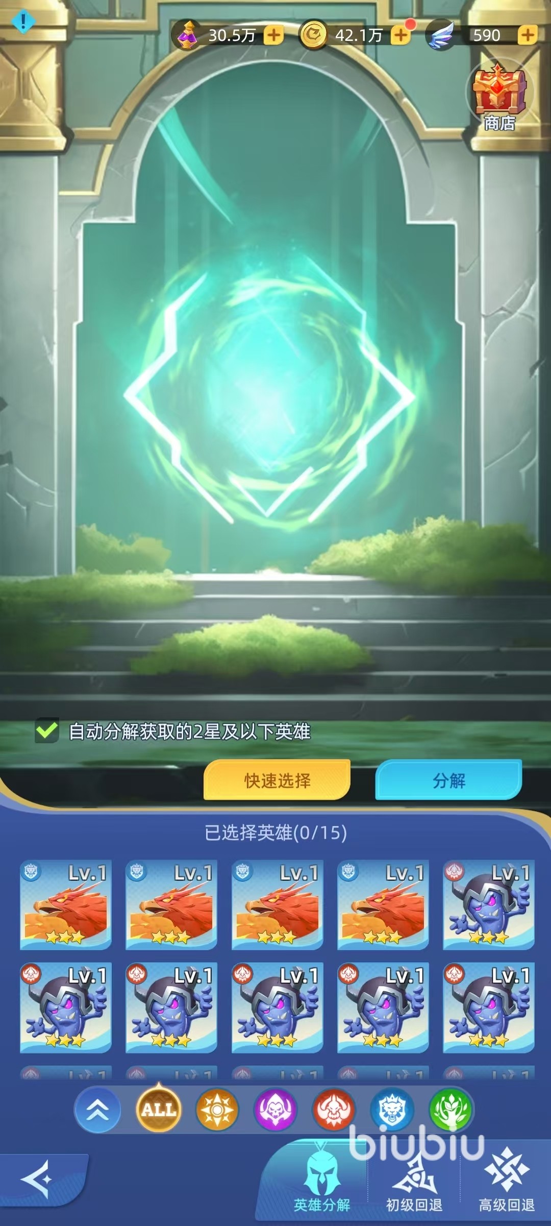 如果分解的是二星和二星以下的英雄卡,那么只能获得一些进阶石。如果分解的是三星或者是三星以上的英雄,额外获得英灵之翼。英灵之翼是在英雄商店中购买各类英雄碎片的关键道具。包括圣光和永夜阵营的强力英雄也包括在商店中,所以这也是获得强力英雄的一项不可缺少的途径。还可以在商店中换成阵营专属碎片,用于随机合成补充仓库。在清理的时候,系统提供了很多便捷的选项,例如快速选择功能可以直接快速进行选择。当玩家达到60级时,会开放一键分解功能,会自动将所有三星和以下的英雄分解掉。但每个阵营都会保留30名三星英雄,作为后续升星所需要的基本材料。可以避免因为误分解而导致后续升星卡壳。
