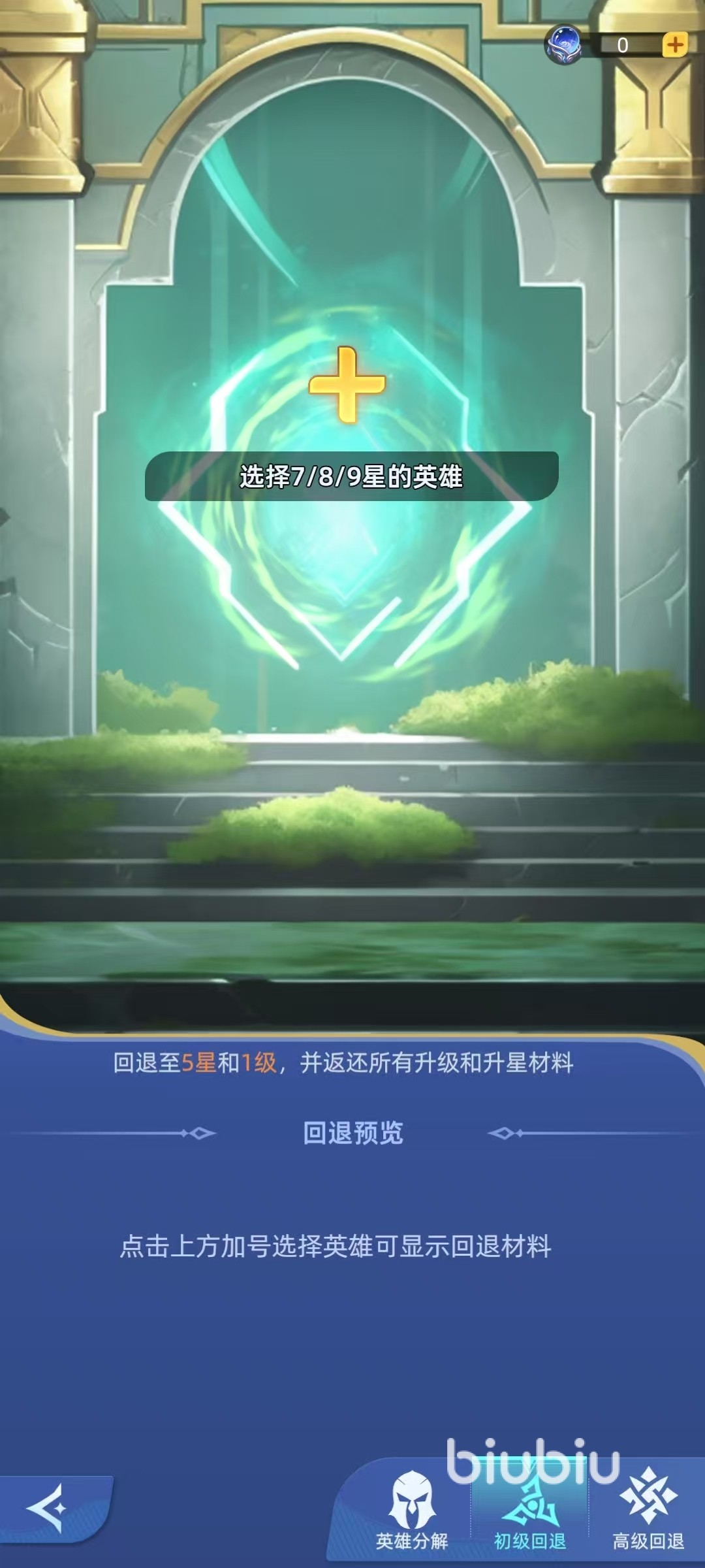 但要注意,英雄分解只支持五星和以下的英雄,更高级的处理方式需要使用到回退。初级回退面向的是7~9星的英雄,可以重置为五星1级,并将所有的升星材料和进阶材料全都返还回来。初级回退需要消耗的是道具逆转灵珠,通过每日礼包等活动就可以获得。高级回退主要处理10星级以上的英雄,可直接退回到九星,同时返还投入的各种材料。高级回退需要用到道具逆转魔晶,主要在每周礼包和巅峰商店中获得。