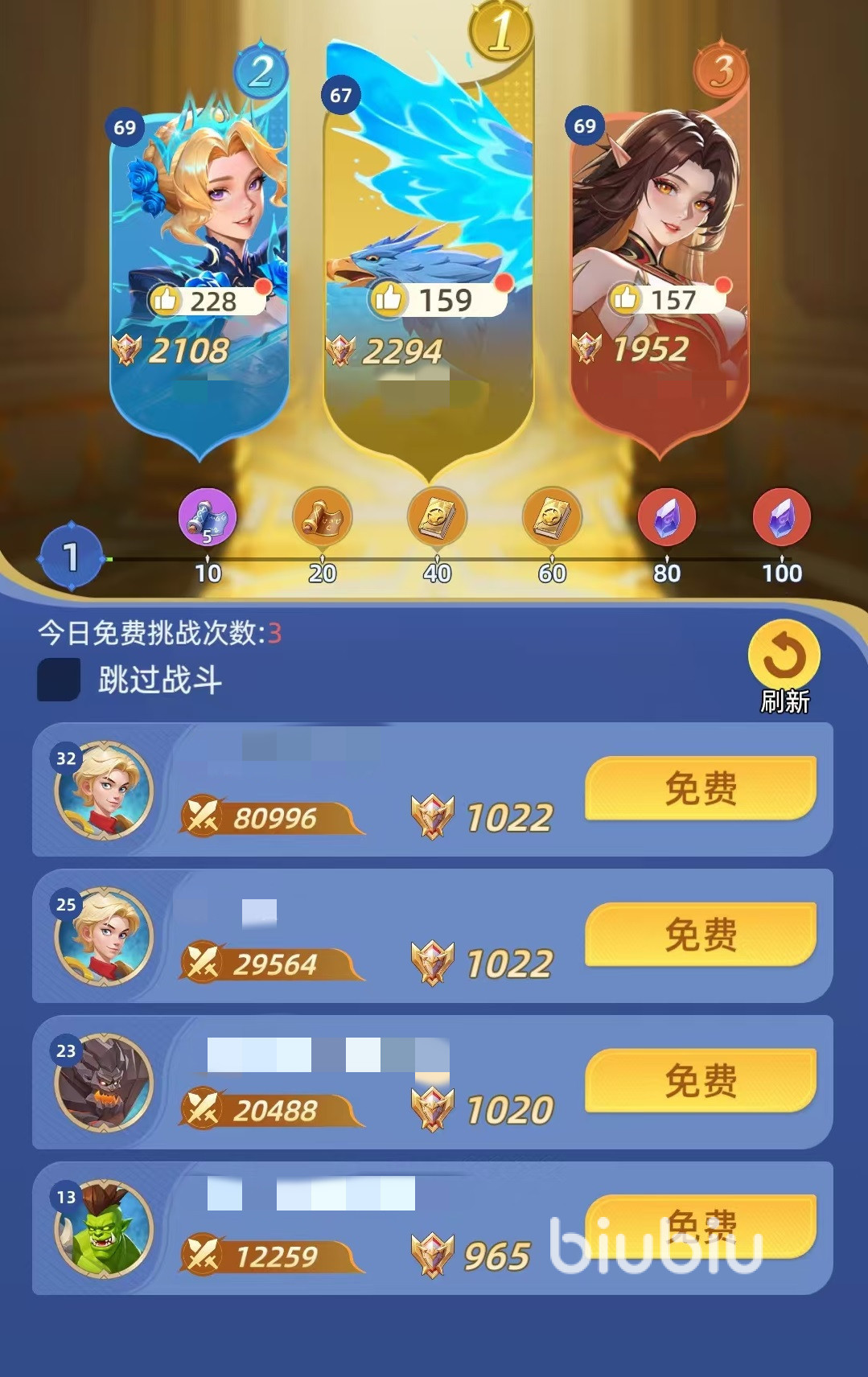 每次进行挑战都需要消耗一张挑战券,系统每天提供三次免费挑战的机会,挑战券可以通过购买等多种途径获得。只要挑战胜利就会增加积分,失败则扣除积分。所以要优先选择和战力接近,但是阵容克制的对手,避开那些实力比较强的敌人。这样同样的门票消耗,可以获得更稳定的净积分。为了保证自身名次,在防守阵容中需要单独设置防守队伍,防守队伍可以和进攻队伍区分开,毕竟进攻和防守是两种不同的机制。
