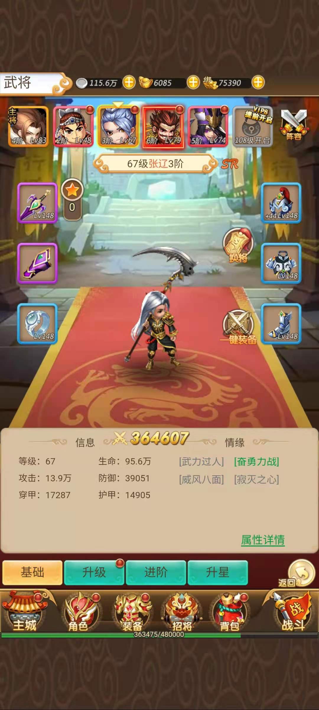 同名武将碎片就比较难搞一些了,如果是低品质的武将碎片的话,可以在推图的过程中获得,还可以在通天塔中获得。但是如果需要进阶的是高品质武将的话,就必须通过元宝招募来获得了,元宝招募需要消耗非绑定的元宝,只能是充值才能获得所以非常珍贵。