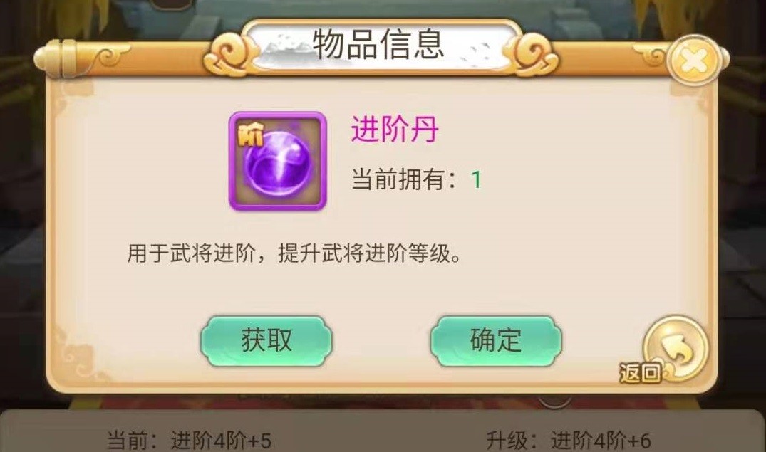 经验池里的经验是通过各种经验丹来获得的,武将等级满足要求之后,就可以进行升阶了,升阶需要升阶丹和同名武将碎片,其中升阶丹是比较容易搞到的,在推图,副本等活动中都可以获得,还可以在商店中使用绑定元宝来购买。