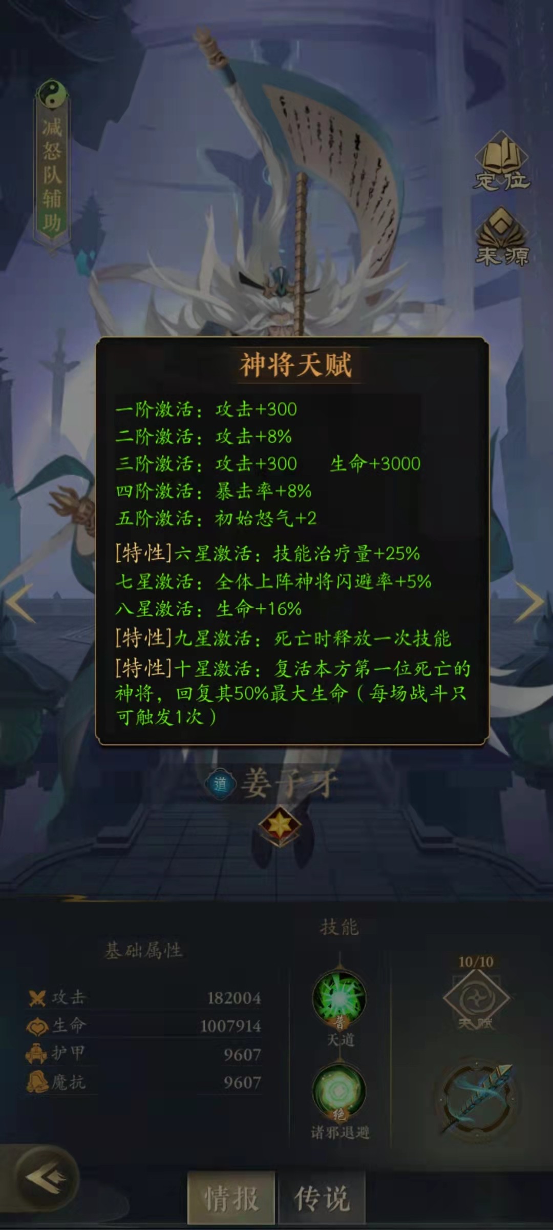 姜子牙的天赋技能也是为了治疗而存在的,在五阶之前,增加的都是攻击力和暴击率,这些都是就可以增加治疗效果的,治疗也是可以享受暴击加成的,在进行群体治疗的时候,多个目标是很容易就出现暴击治疗的。一旦出现暴击,血量可以直接增加一大块。在姜子牙达到六星的时候,才是真正发挥威力的时候,技能的治疗量直接增加了百分之二十五。