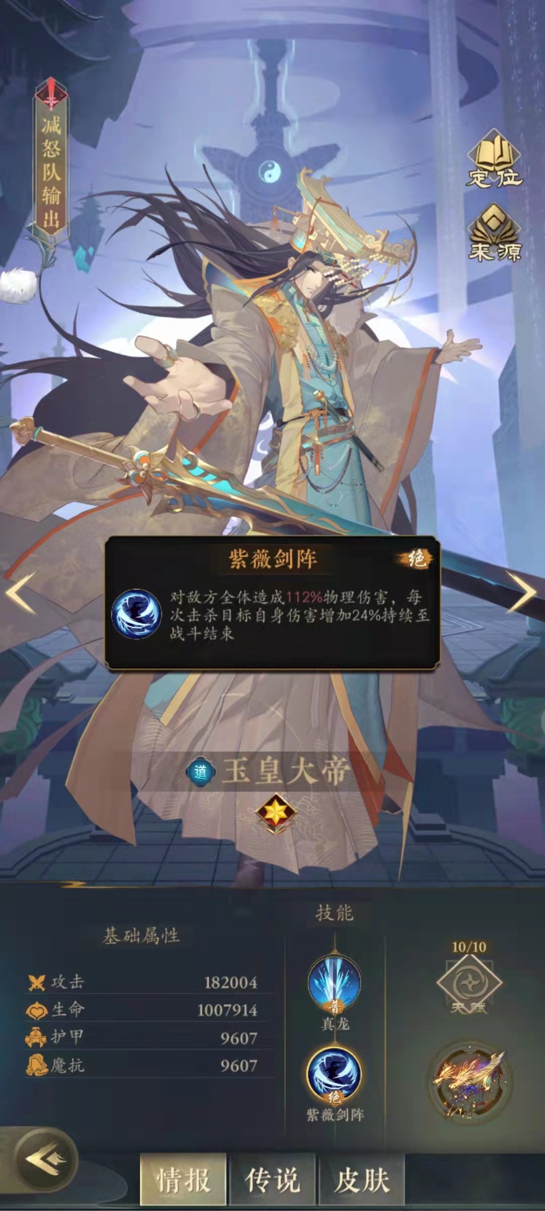 玉皇大帝自身的绝技紫薇剑阵,效果是可以伤害对方全体神将,如果技能直接击杀了目标,那么还可以提升玉皇大帝百分之二十四的伤害,伤害加成效果可以一直持续到战斗结束。所以说玉皇大帝绝对是一个输出非常给力的角色,想要搭配阵容的话,小编建议搭配一套同样输出犀利的神将,最好是有强力单体伤害的,这样可以帮助玉皇大帝尽快的拿到伤害加成。