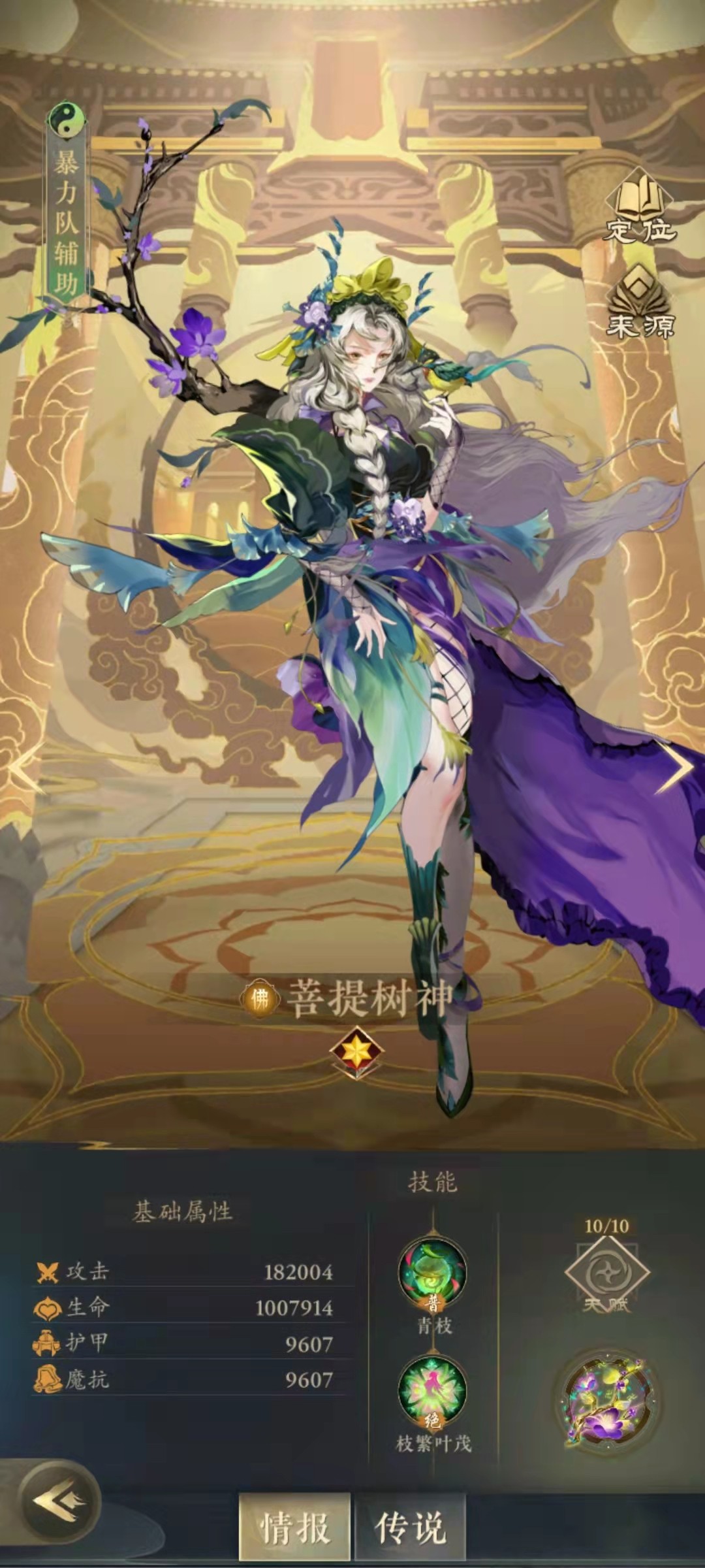 除了这三名输出一定要有之外,我们不需要肉盾,只要来辅助就可以了,小编推荐选择菩提树神,这名神将的绝技非常犀利,可以伤害敌方后排单体,并且能将伤害值按照比例转化为治疗效果,治疗的目标是己方血量最低的一名神将。这样一来要比那些只能单纯加血的辅助强很多,也为队伍增加了高贵的单体输出。