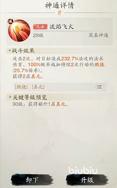 更重要的是法中的技能倍率非常高,一来就适合快速推图的玩家使用。在日常pve中可以更快的解决所遇到的难关,做法中在前期可以学习各种咒法。主要以火系的能力为主,如此便可迅速叠加各种燃烧伤害。值得注意的是,学了神通之后,要将神通的位置切换一下,才能发挥自己的本领。