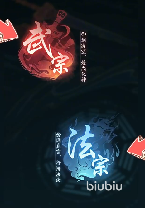 如果大家想要玩法中的话,那么在游戏的新手教程通过之后。就可以从武宗以及法宗两者之间选择一个,其实两者也很好理解。武宗就是物理输出型的职业,至于法宗的话便是法术型输出职业,后者拥有更强大的远程输出能力。
