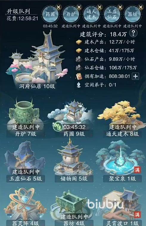 当我们升级成功之后,又可以提升自己的建造评分。建造评分越高的话,那么就能获得更高的产出速度。例如开垦药田又可以提升炼丹的效率,提升器坊等级的话,那么就可以提升制造装备武器的效率。如果大家想要获取建造的资源,就可以通过建木以及仙石,如此便可实现自给自足。