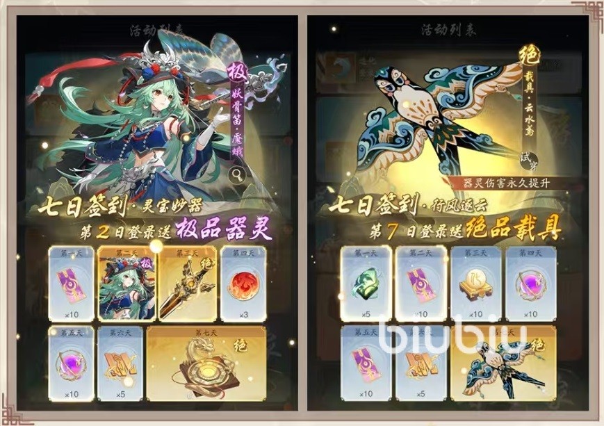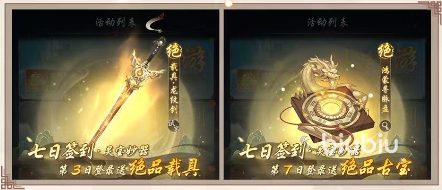 接下来是比较长期的福利,只要每天坚持签到,就能够获得极品器灵妖骨笛,还有绝品载具龙纹剑以及10连古宝等,更有上古秘宝鸿蒙寻脉盘在等待玩家获取。坚持连续登录14天,能免费获得绝品载具云水鸢,这是一个在外观方面非常帅气的载具,千万不要错过。另外还能获得古宝寻踪符,器灵印,功法要诀等珍稀奖励。在首周只要能够做到全勤,那么最多能够获得27000造化,通关每一章节的剧情都能送200造化和50修为密钥以及天灵宝瓶古宝碎片等奖励,让大家的修仙之路变得畅通无阻。
