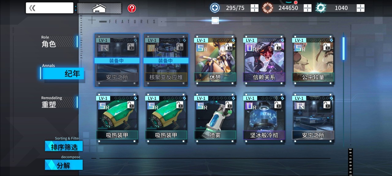 在这个界面你将看到你拥有哪些纪年。在分解之前玩家也可点击排序,将纪年按照稀有度排列之后,再进行分解,会更加便利。