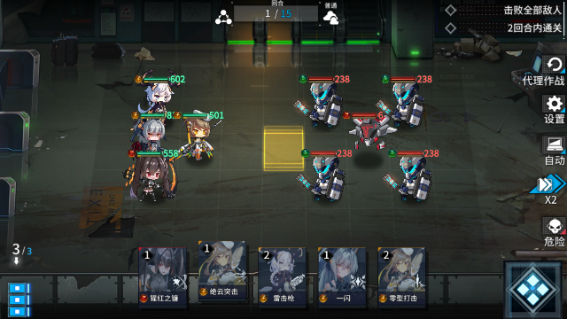沐子菲使用绝云突破后会位移到敌方单位后面。这时自杀机器会被引爆,虽然我方沐子菲会和敌方其他单位一起被炸死,但我们在1回合内完成了通关。同时达成了胜利条件和特殊条件。