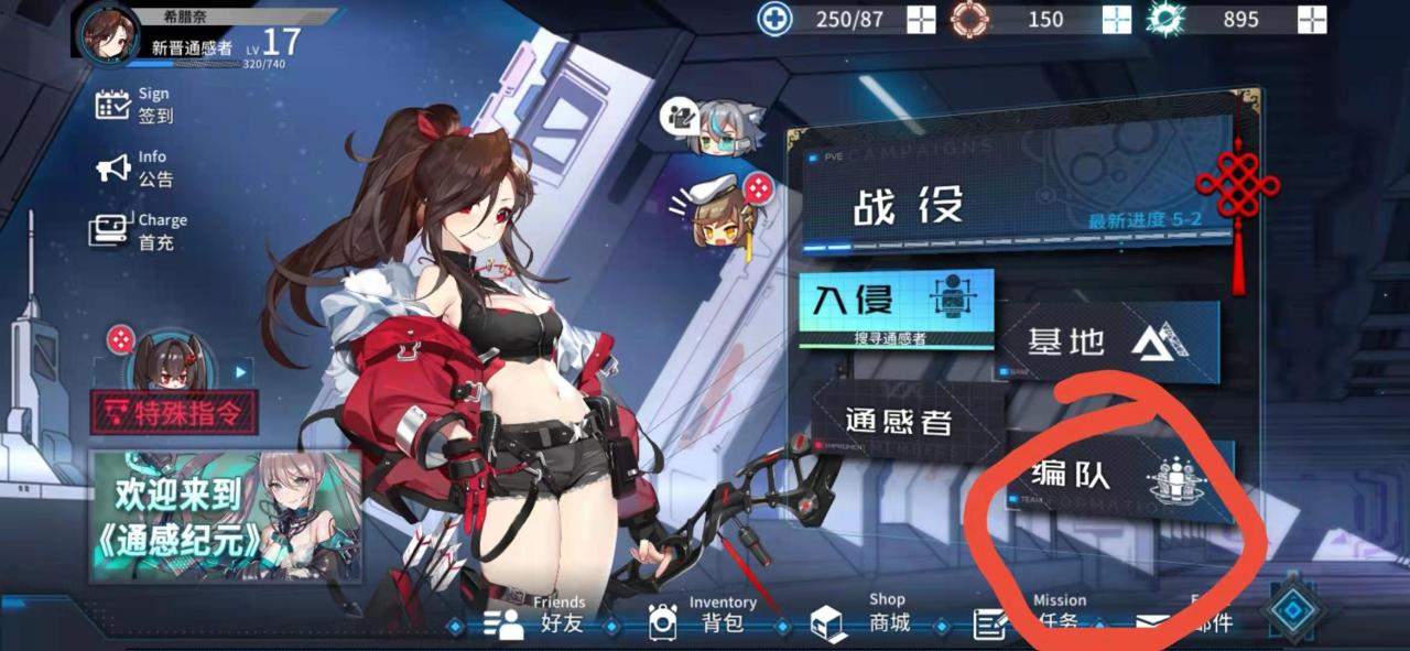 2.获得纪年之后点击主界面的编队,这里可以编辑队伍和队伍纪年装备,每个通感者有2个纪年可以装备,上面的一个是专属纪年,需要通过增加好感度解锁,下面的一个就是自己抽到的纪年装备处了。
