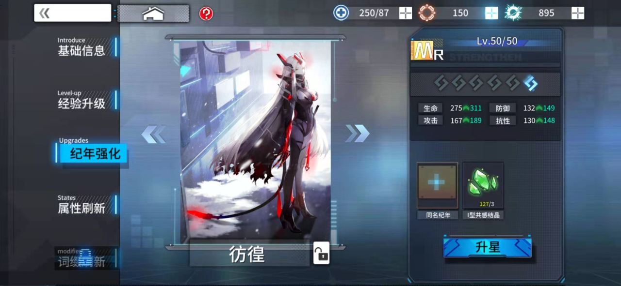 最高可以强化5次,把等级上限提升至75,玩家可以花费信用点进行升级,这也是信用点大量消耗的地方之一。