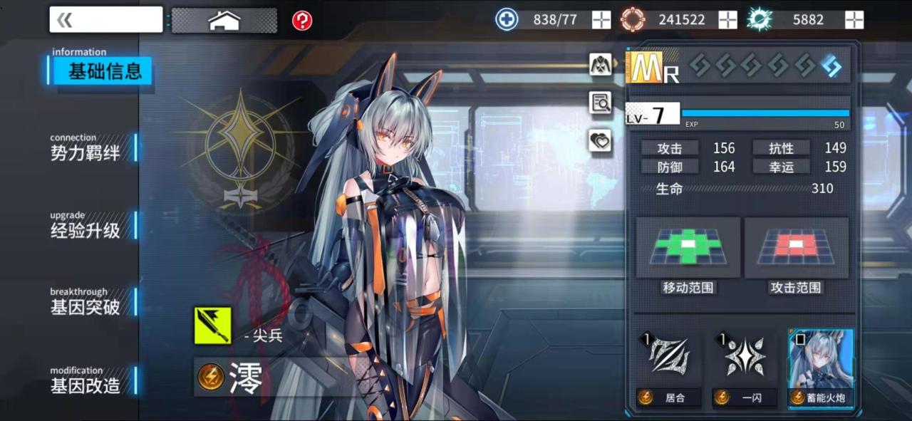 比起上面两个MR角色,这个角色的综合素质比较良好,拥有很广的移动范围,同时攻击范围也大。不过她的技能主要作为恢复手段使用,能够替其他角色加血。若是其它角色都是攻击性角色的话,很适合带这个辅助性的MR角色。